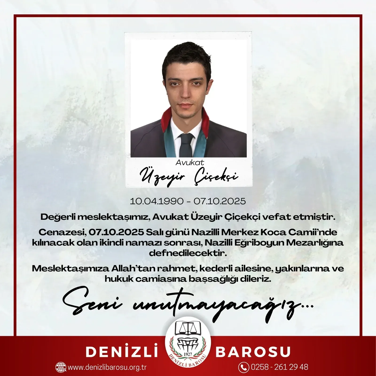 Çiçekçi'nin ölüm haberi Denizli Barosu'ndaki meslektaşlarını yasa boğdu.
