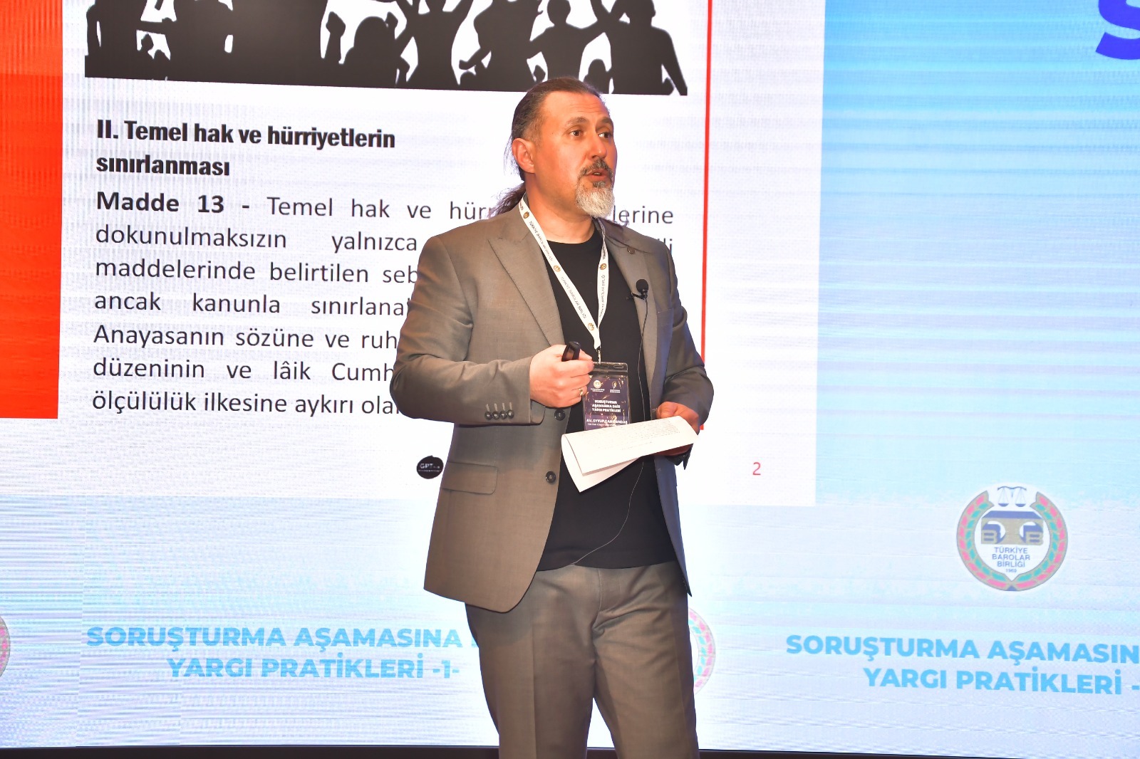“Maalesef içinden geçtiğimiz günlerde sıklıkla ölçüsüz bir biçimde temel hak ve özgürlüklerin ihlal edildiğini görmekteyiz. Özellikle gösteri ve yürüyüş hakkına kanuna aykırı müdahalelerin yapıldığı, polisin şiddet uyguladığı, aynı zamanda gözaltı ve tutuklama işlemlerinin mahkemelerce kolaylıkla uygulandığı bir dönemden geçiyoruz. Bizler TBB olarak her defasında hukuka, hukukun üstünlüğüne dayalı demokratik devletin gerekliliklerine işaret ediyoruz. Çünkü bu hepimiz açısından vazgeçilmez teminatlar ve güvenceler sunmaktadır. Bugün gerçekleştireceğimiz Soruşturma Aşamasına Dair Yargı Pratikleri, bu konuda bize çok ciddi veriler ve bilgiler sunmaya elverişli bir konu ihtiva ediyor. Çünkü gerçekten bu tedbirlere ne zaman ve hangi ölçüde başvurulması gerektiği, temel bir toplumsal ihtiyaca cevap verip vermediği, ölçülülük ve gereklilik ilkelerine uygun olup olmadığı, bütün bunların tek tek analiz edilmesi ve sorgulanması gerekiyor.”