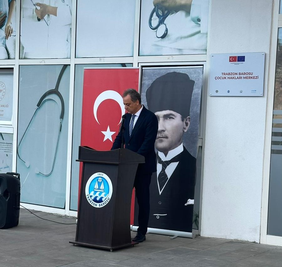 Türkiye Barolar Birliği’nin (TBB) ana faydalanıcısı olduğu, Avrupa Birliği’nin finansal desteği ve UNICEF’in teknik desteğiyle yürütülen “Çocuk Haklarının Geliştirilmesi, Korunması ve İzlenmesi Konusunda Avukatların ve Baroların Kapasitelerinin Güçlendirilmesi (ÇABA) Projesi” kapsamında Trabzon Barosu bünyesinde kurulan Çocuk Hakları Merkezi, düzenlenen törenle hizmete açıldı.