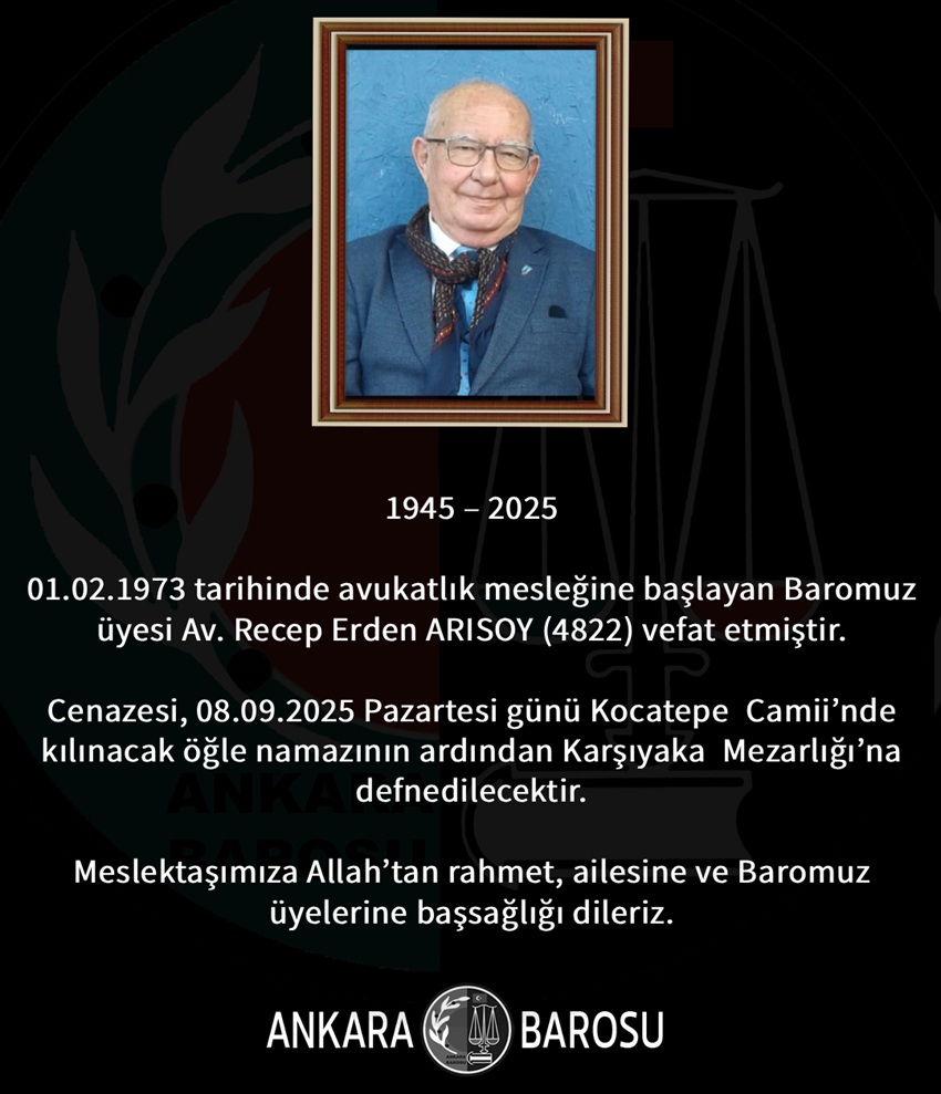 Ankara Barosu üyesi Avukat Recep Erden Arısoy (4822) vefat etti.